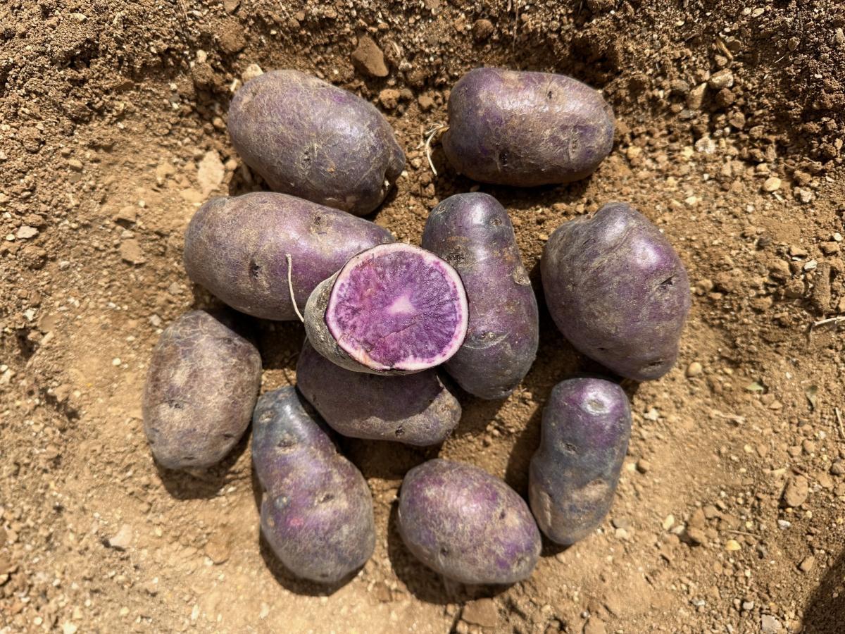 La Violine, pomme de terre de forme ronde, a une peau noire et la chair violette. Elle conserve sa couleur après la cuisson. Agréable au palais, elle laisse un subtil goût de châtaigne et noisette en fin de bouche.